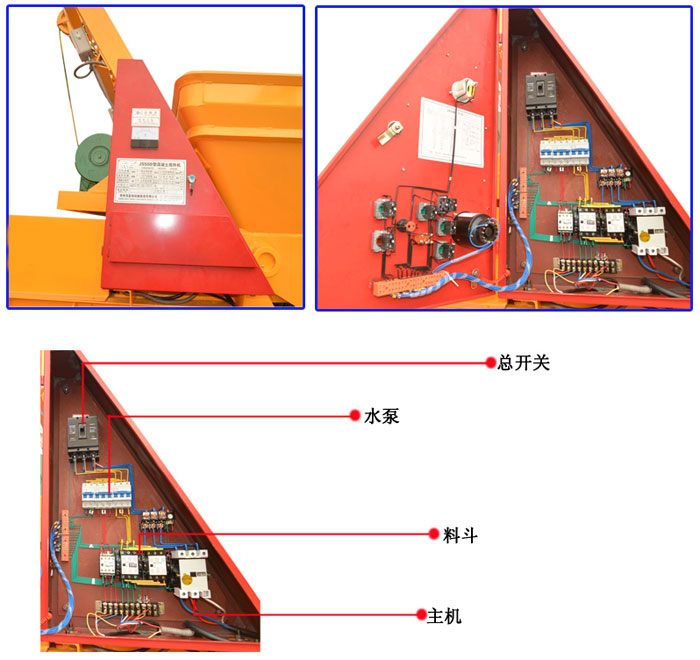 ●JS500混凝土攪拌機電氣控制線路設有空氣開關、熔斷器、熱繼電器,具有短路保護、過載保護的功能。